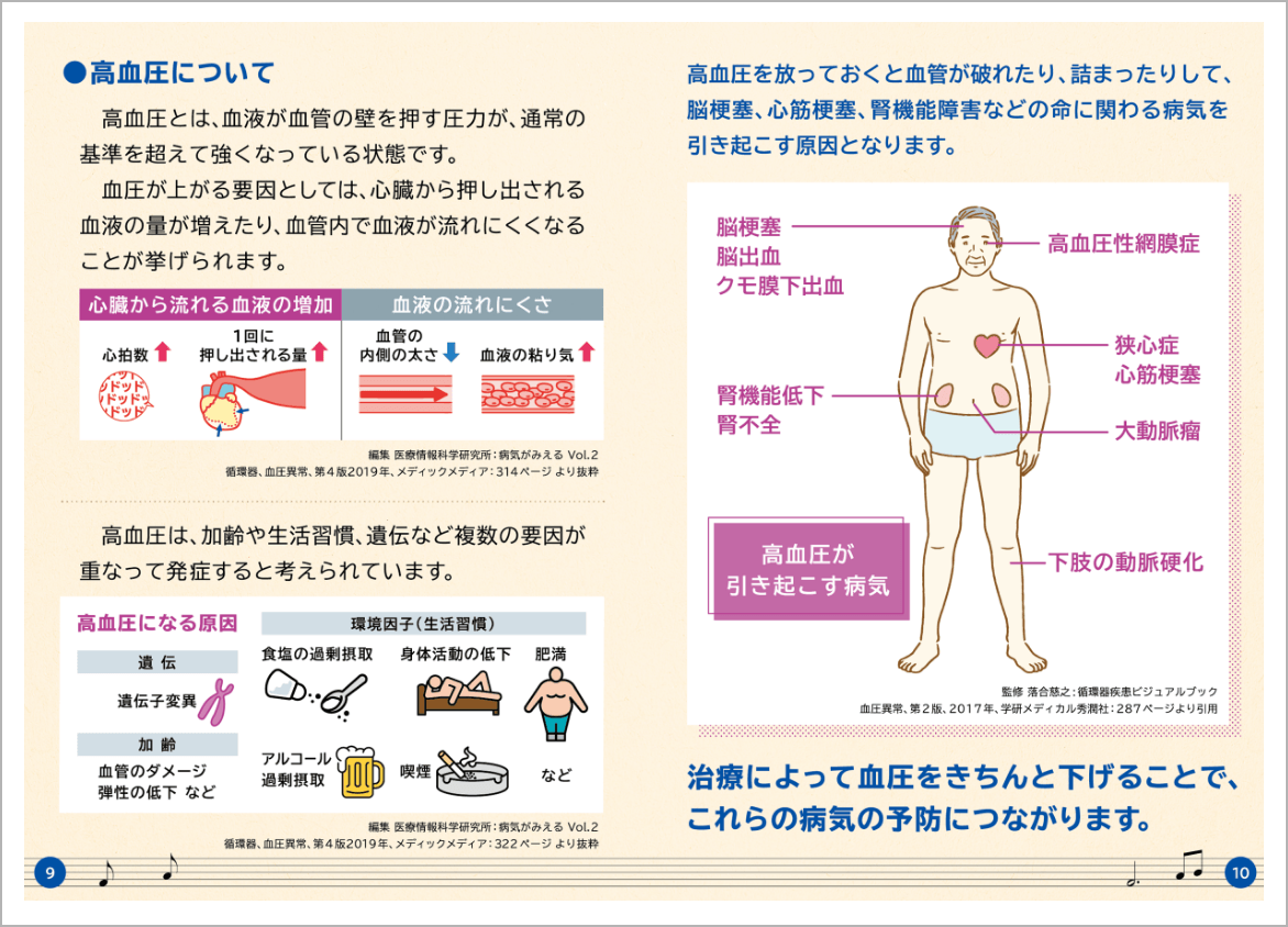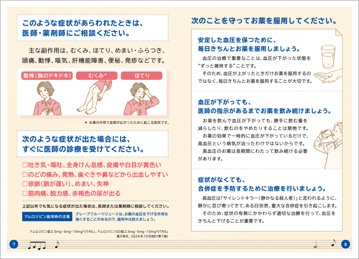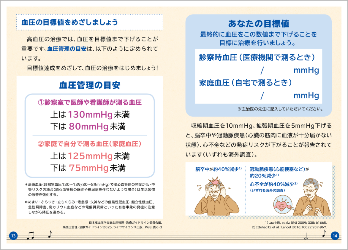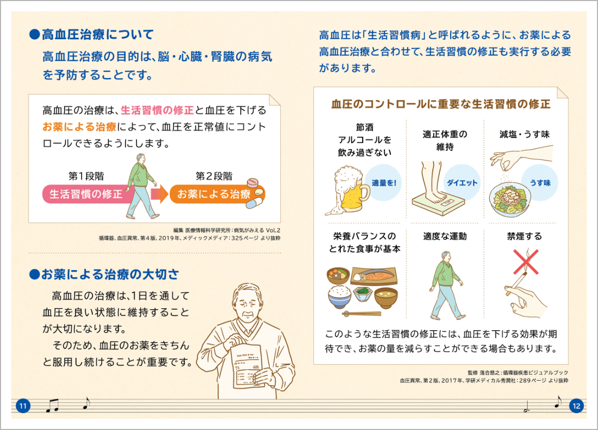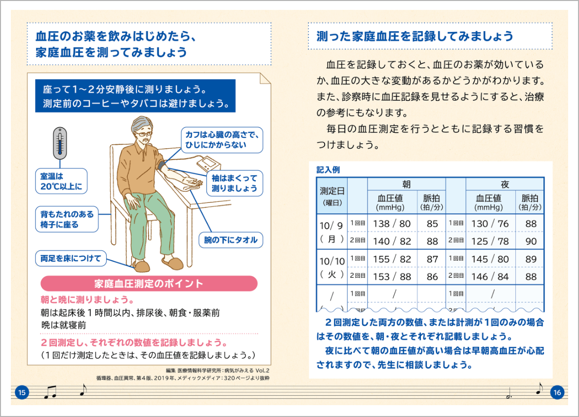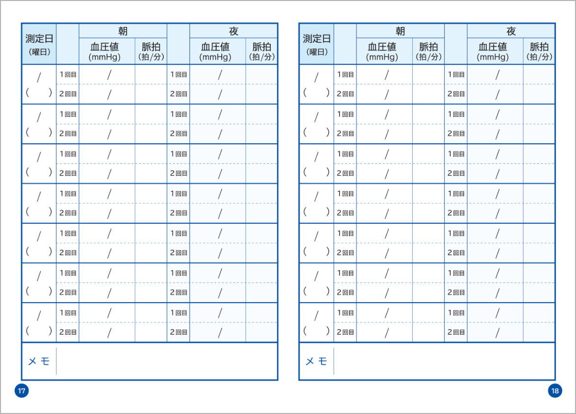 高血圧治療の大切さをご理解いただく冊子です。約7ヶ月分の血圧記録もできる仕様となっており、主治医や薬剤師と治療経過についてコミュニケーションを取ることを目的に作成されています。